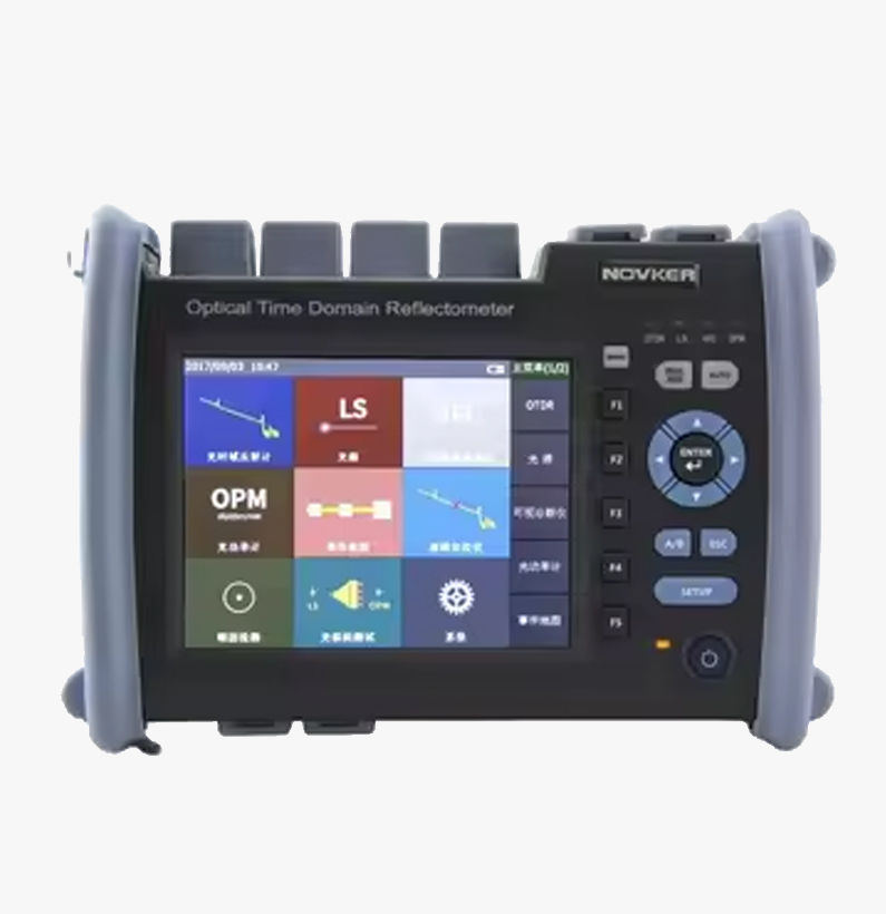 Handheld OTDR NK6000; fiber test device; measures loss, length, faults; color screen; multi-wavelength; VFL; OPM; rugged; portable; intuitive; reliable performance.
