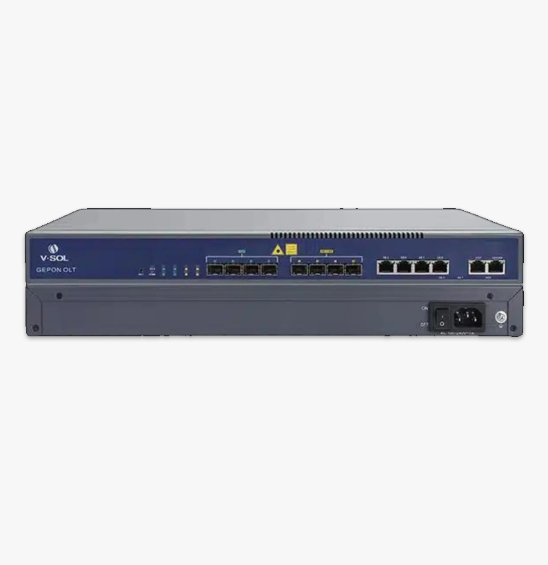 EPON ONT, 8 Ethernet LAN ports, single fiber port, supports EPON, basic routing, DHCP/NAT, IPv6, compact, reliable, ISP compatible, plug-and-play.